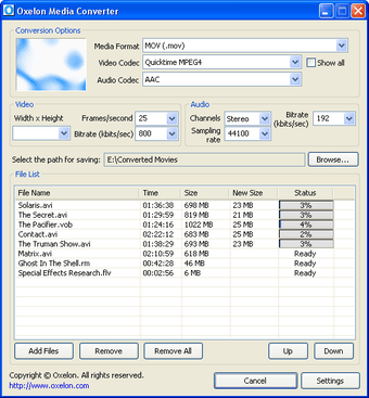 Oxelon Media Converter es una aplicación gratuita diseñada para Windows que permite a los usuarios convertir archivos de video de un formato a otro. Esta herramienta se destaca en la categoría de multimedia, ofreciendo una interfaz sencilla y accesible para facilitar el proceso de conversión. Entre sus principales características, incluye soporte para múltiples formatos de entrada y salida, así como opciones de personalización en la calidad y resolución del video.